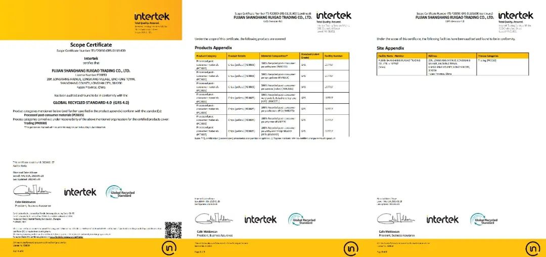 鑫昌龍針對再生塑料出口貿易成立的子公司福建上杭瑞高貿易有限公司,近日也取得了GRS認證證書,對于推動再生塑料的使用,減少對環境的影響,提升鑫昌龍“綠色”和“環保”的市場競爭力,進入國際化市場將會有很大的幫助。